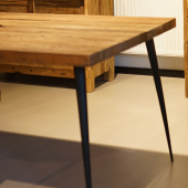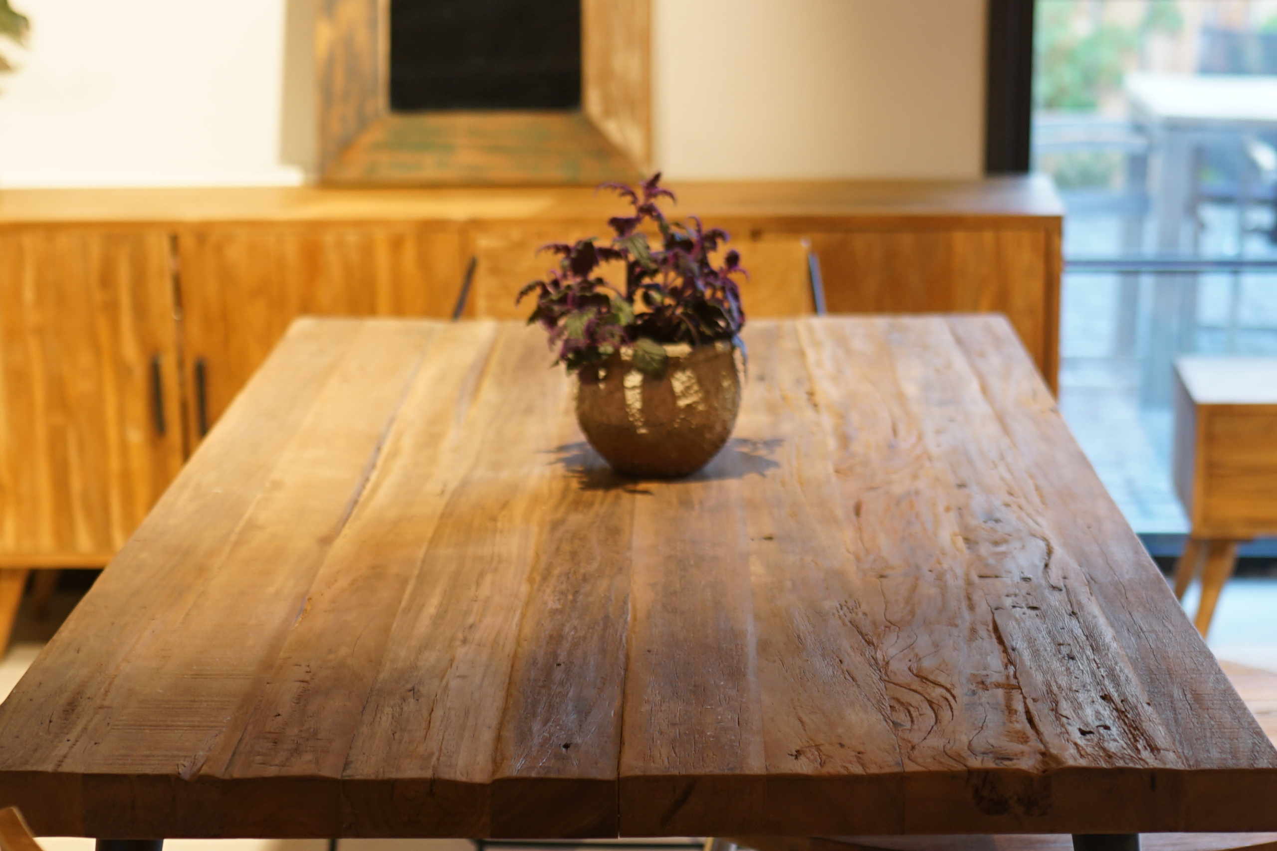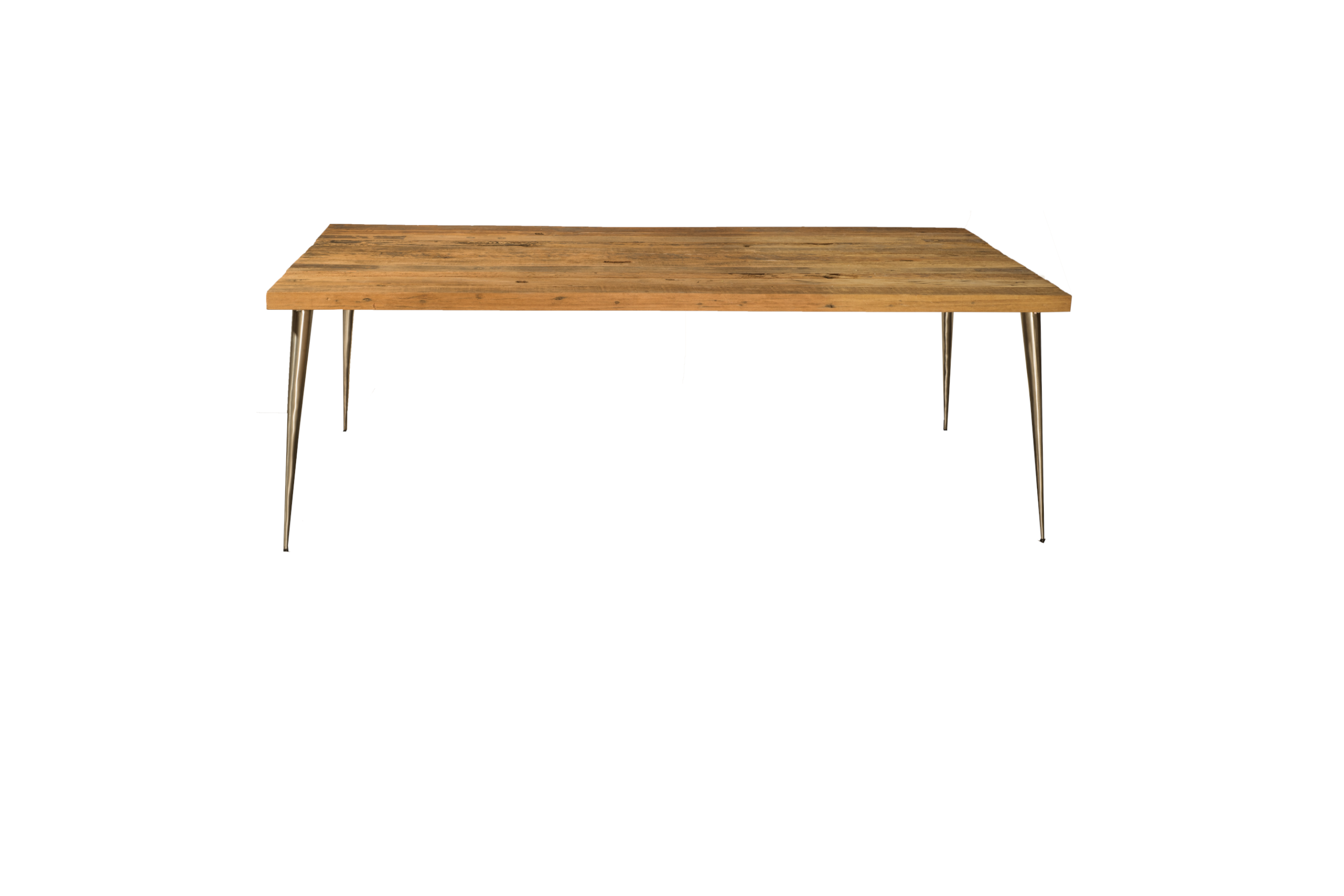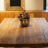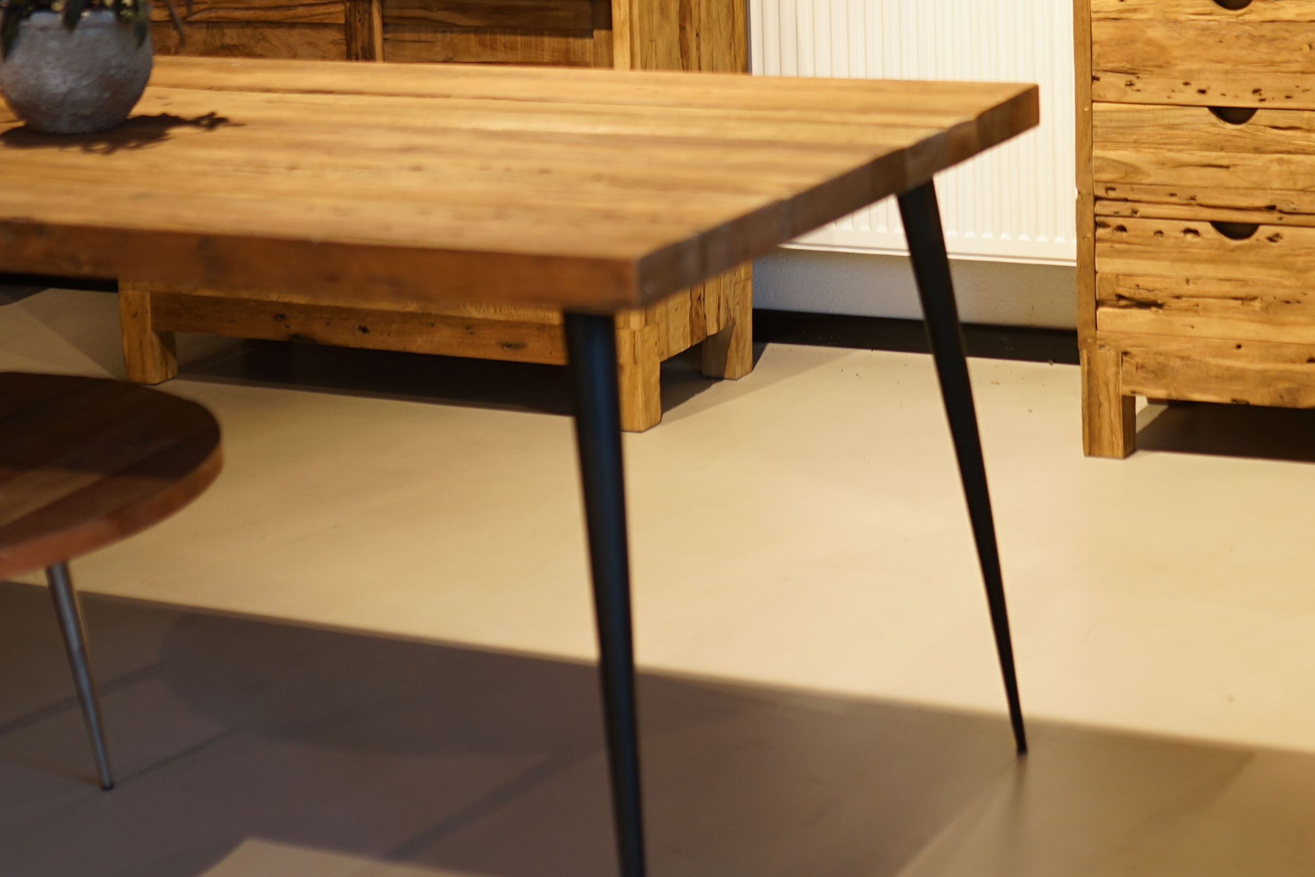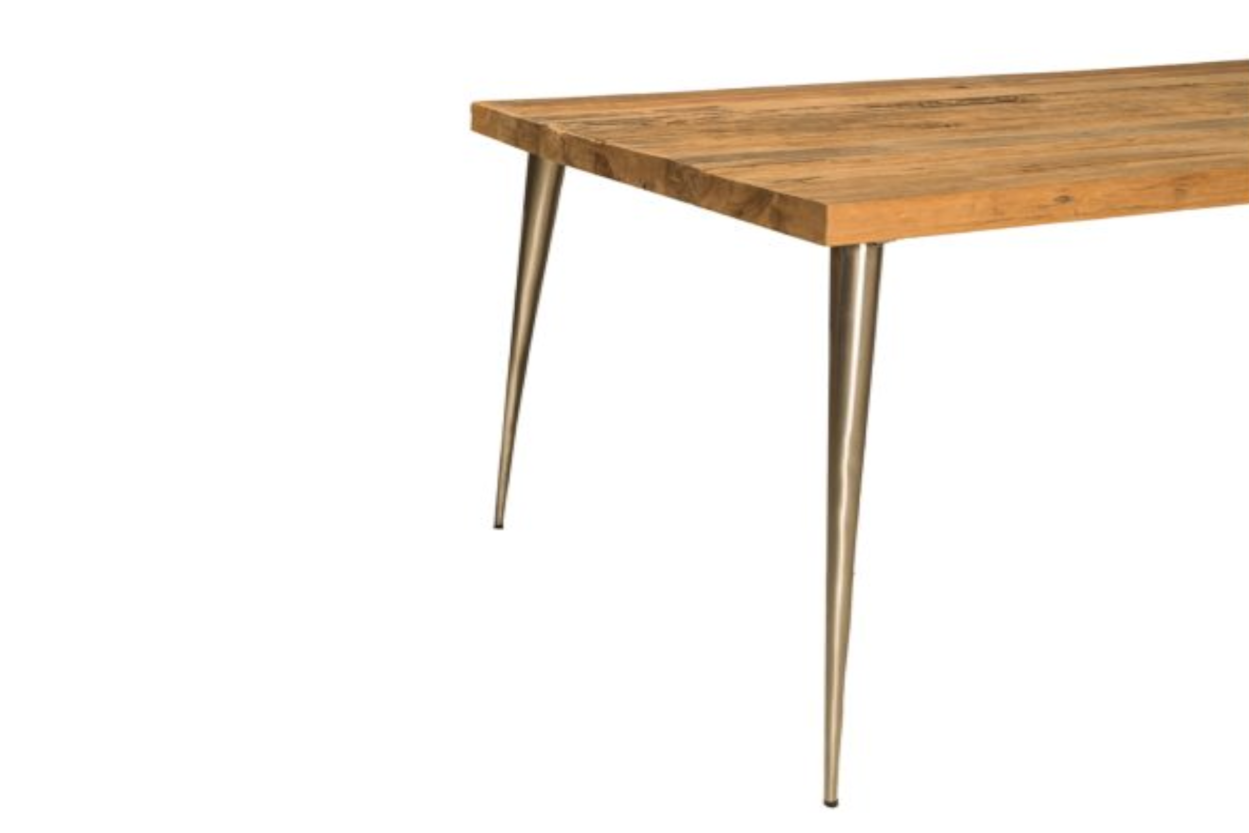Recycled teak ve paslanmaz çeliğin mükemmel uyumu ile üretilmiş şık masa.