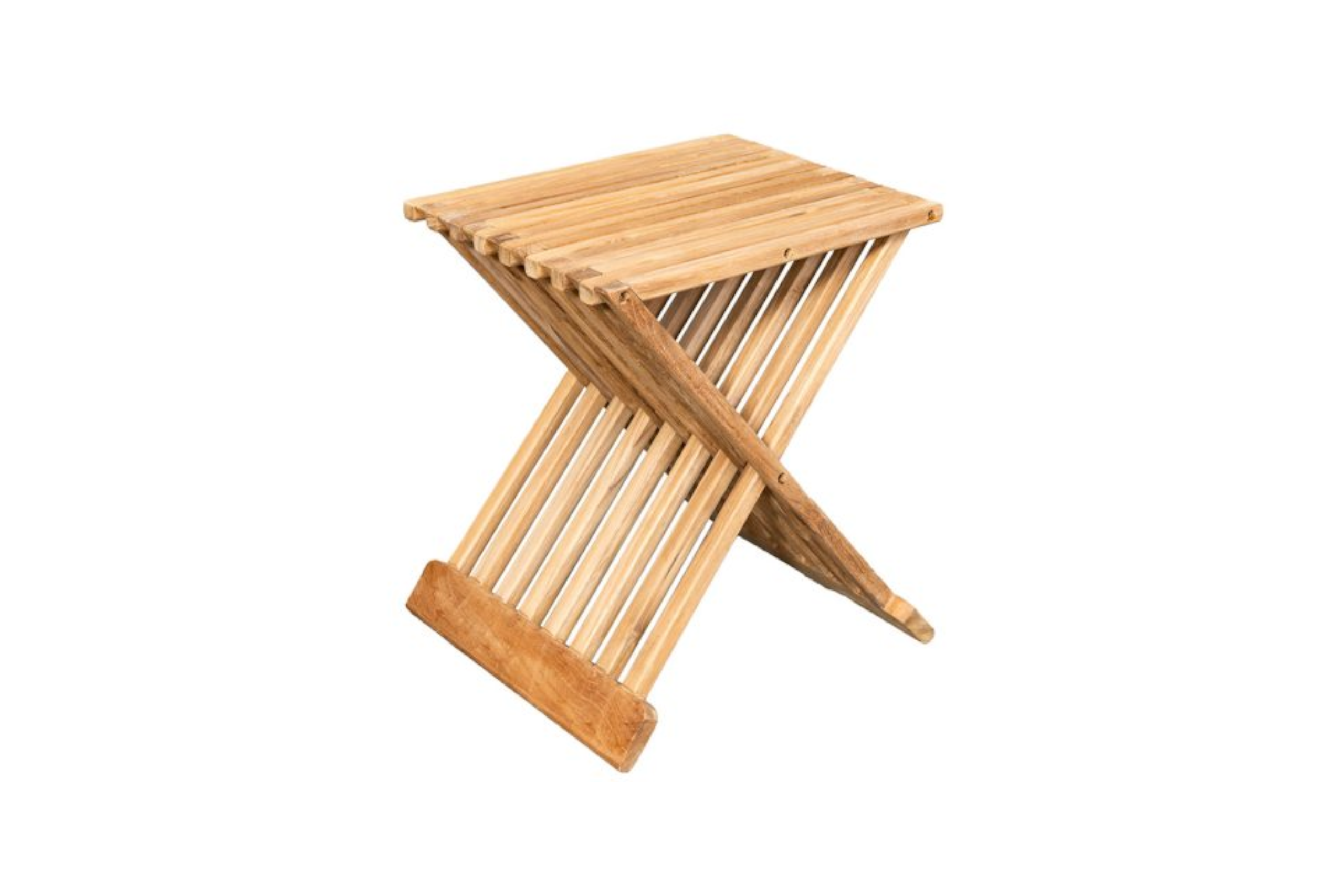 Natural teak ağacından üretilmiş şık katlanabilir sehpa.