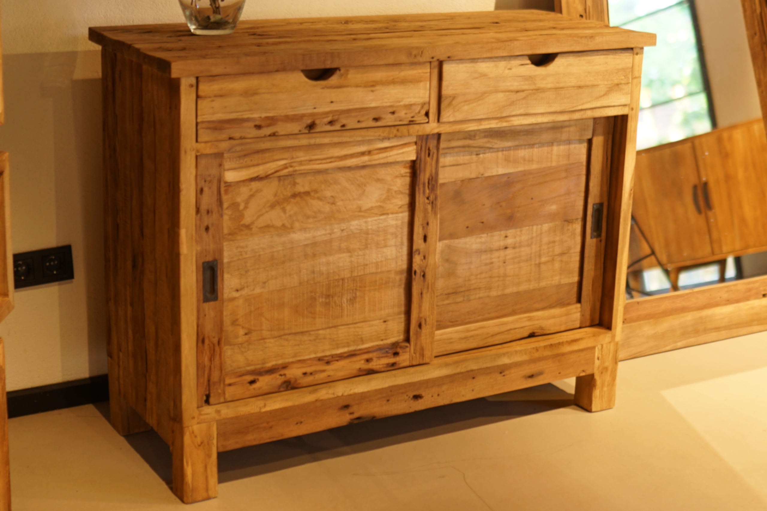 Recycled teak iç mekan büfe.