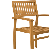 Tamamen natural teak ağacından üretilen zamansız ve şık tasarıma sahip sandalyeler iç içe geçebilme özelliği ile yer kaplamaz, pratik kullanım sağlar.